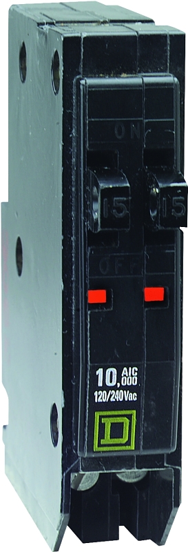 Square D QO QOT1515CP Circuit Breaker, Mini, Tandem, 15 A, 1 -Pole, 120/240 V, Plug Mounting, Black