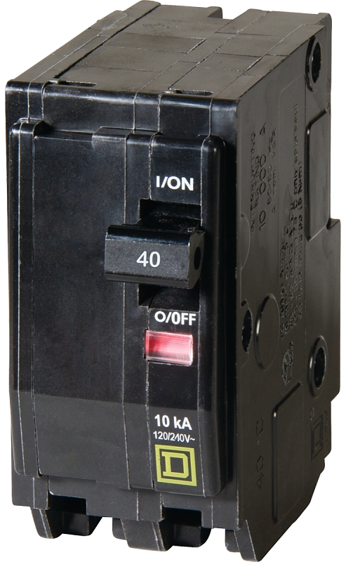 Square D QO QO240C Circuit Breaker, Mini, 40 A, 2 -Pole, 120/240 VAC, 48 VDC, Plug Mounting, Black