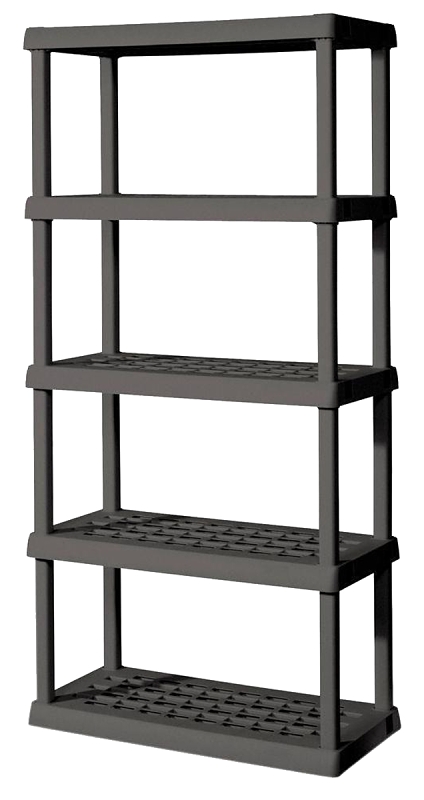 The 5-shelf unit provides ventilated shelves along with rugged tubular construction that helps keep items dry, reduce odors and prevent mildew and is designed for heavy-duty usage. Additionally, Sterilite’s 25 qt or 50 qt shelf totes fit perfectly on these shelves to create the ultimate storage solution. The shelving unit can be assembled quickly, without the need for tools.