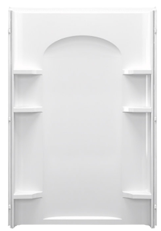 With a unique curved design, the Ensemble shower back wall pairs a fresh look with exceptional functionality. Built of solid Vikrell© for material strength, durability and lasting beauty, it features a smooth, shiny surface that’s easy-to-clean. The modular design allows it to be moved around corners and through doorways with ease. Convenient shelves add plenty of storage and a shaving ledge/footrest adds comfort.
