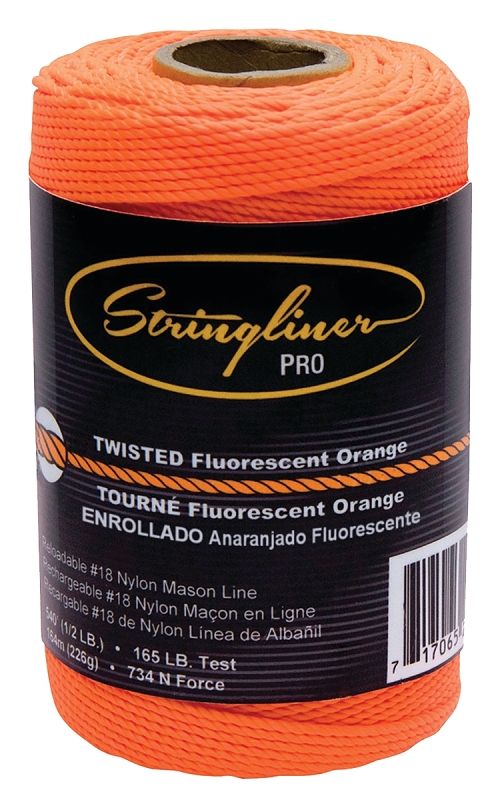 Stringliner Pro Series 35406 Construction Line, #18 Dia, 540 ft L, 165 lb Working Load, Nylon, Fluorescent Orange