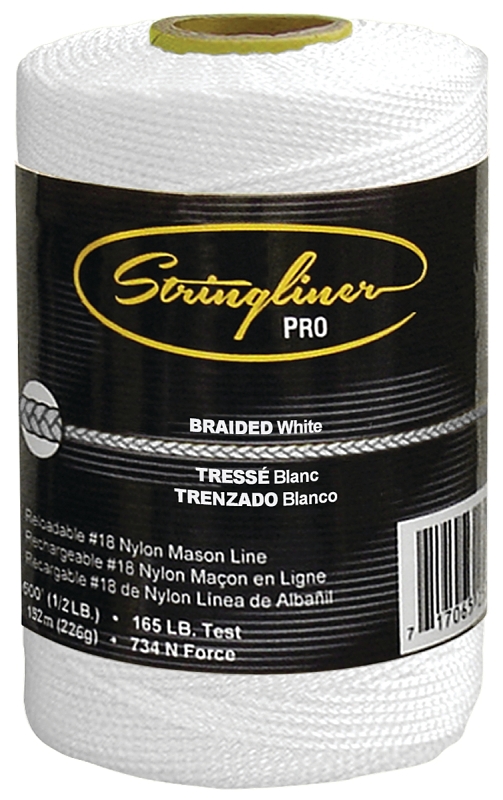 Stringliner Pro Series 35453 Construction Line, #18 Dia, 500 ft L, 165 lb Working Load, Nylon, White