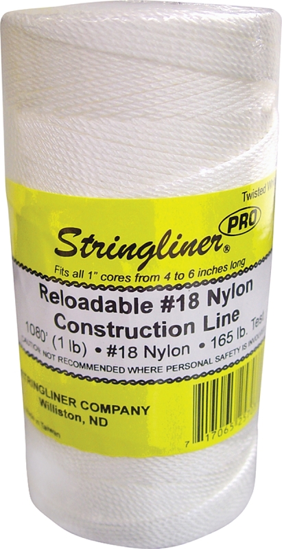 Stringliner Pro Series 35703 Construction Line, #18 Dia, 1080 ft L, 165 lb Working Load, Nylon, White