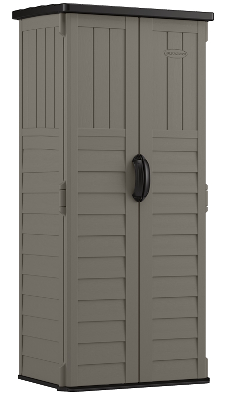 Great for organizing tools, gardening gear, ladders and more, the Suncast vertical storage shed is the perfect choice for a small patio, porch or balcony. With a customizable interior that can support up to four shelves (not included), this water-resistant, UV-protected shed will provide year round organization, not to mention easy maintenance, with its durable, multi-wall resin construction. Available in stylish Stoney and black to enhance any environment.