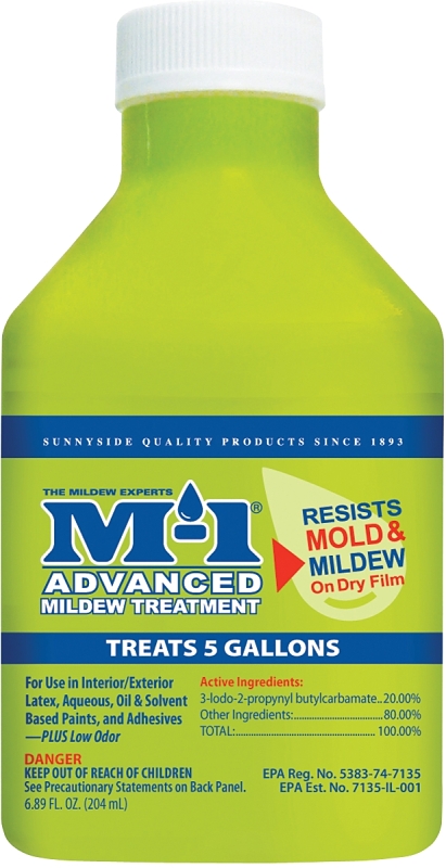 M-1 advanced mildew treatment has broken the mold with cutting edge technology when battling mold, mildew and algae. M-1 advanced mildew treatment takes up where other additives leave off without harming the environment. M-1 advanced mildew treatment is compatible with virtually every available aqueous and non-aqueous paint formulated tested.