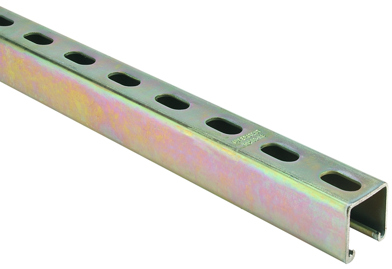 Steel half slot strut, gold galvanized.