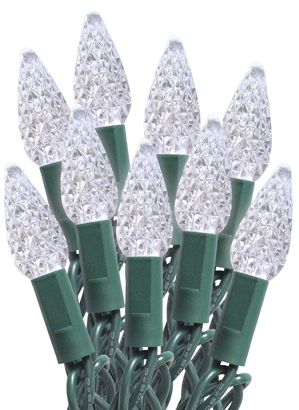 These C6 LED lights are a perfect addition inside your home on your tree, doorways and outdoor spaces. Features 100 cool white color bulbs on green wire. 20,000 hours of holiday lights.