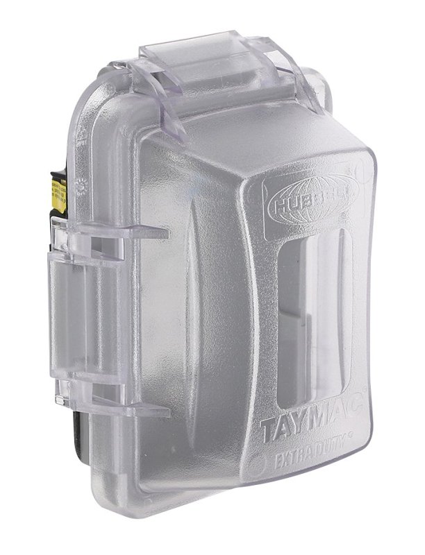 TayMac Extra Duty Complete In-Use Cover Kit, Number of Gangs: 1, Aluminum, Clear, 3.01 in L, 4.53 in W, 5.89 in H, NEMA Rating: 3R, Quick-Fit Keyhole Mounting, Includes: Box, 15A WR/TR Receptacle and Cover, Attached Gasket and Mounting Hardware