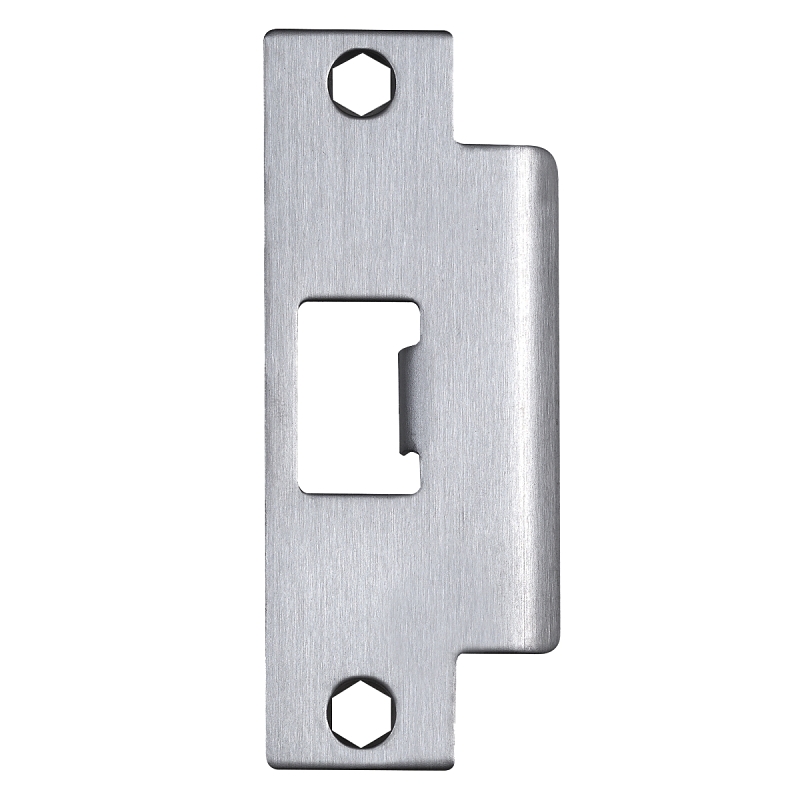 Strike plate for interior or exterior metal frame doors, commercial-grade, 4-7/8 in x 1-1/4 in square corners.
