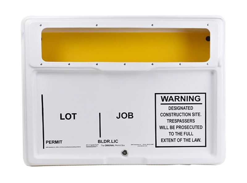 An all-in-one permit posting system that protects plans, permits, inspection schedules and other required notices on the job site. The DOC-BOX is available with or without viewing window and/or locks. In use by builders nationwide for over eighteen years, the Doc-Box is a field proven, durable and long-lasting product – actually more economical than homemade posting boards! And the Doc-Box is fully assured.