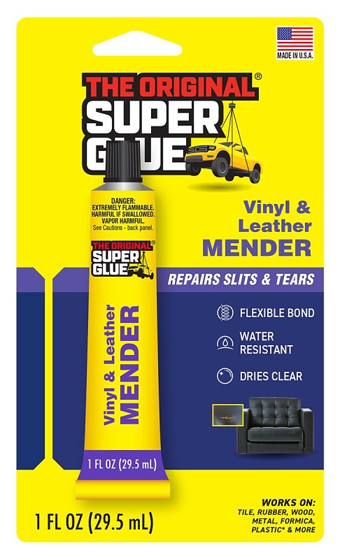 Vinyl and leather mender repairs slits and tears on upholstery, clothing, luggage, vinyl boots, rainwear, boat covers, air mattresses and much more. Water-resistant formula dries clear and stays flexible.