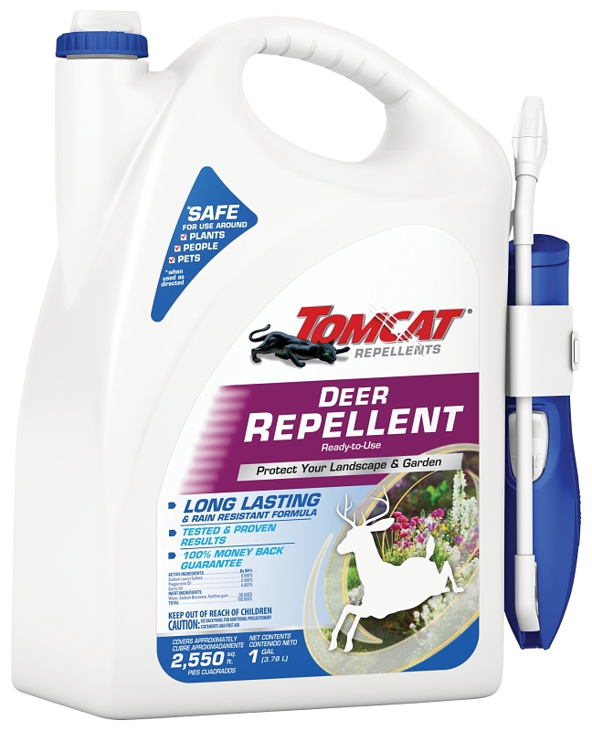 Tomcat Deer and Rabbit Repellent, 2555 sq-ft Coverage Area, Odor/Scent: Peppermint, Clear/Hazy, Ingredients: Garlic Oil, Peppermint Oil, Sodium Lauryl Sulfate, Indoor/Outdoor: Outdoor