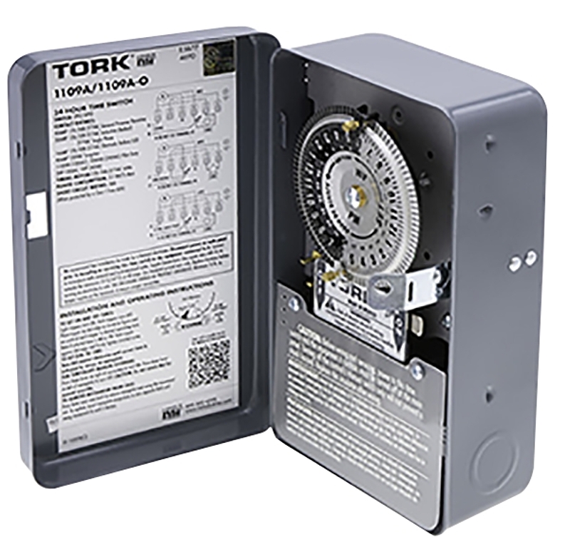 Tork 1100 Timer Switch, 40 A, 120 to 277 VAC, Wattage Rating: 3 W, Time Setting: 24 hr, Contact Rating: 120/208 to 277 VAC, 60 Hz, 40 A, Contact Configuration: DPST, Conductor Size: #8 to #14 AWG