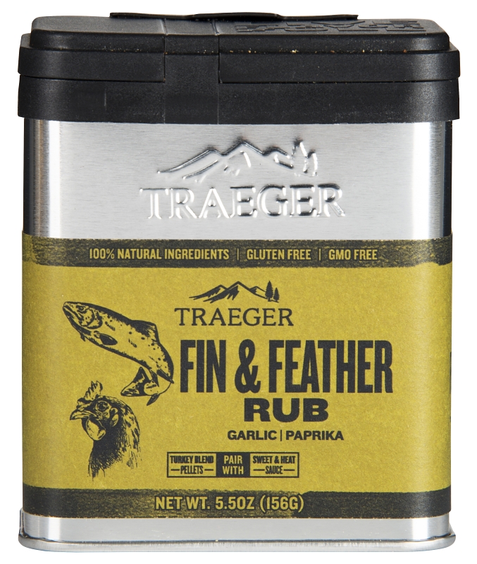Amp up the flavor of everything from turkey to trout with Traeger Fin & Feather Rub. This savory rub features garlic, onion and just a hint of spiciness to complement that flavor of fish and fowl without overpowering it.