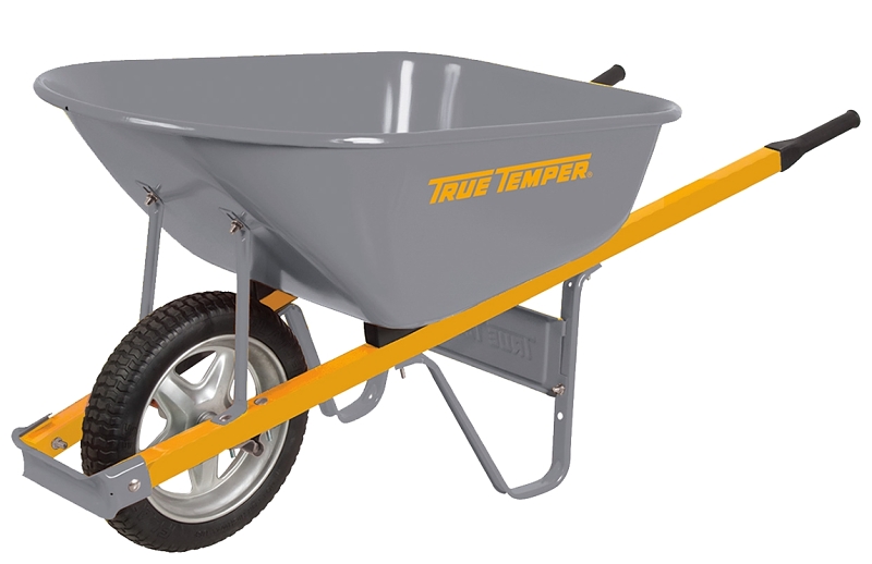 Get more done with this hard-working True Temper® wheelbarrow. The high-capacity 6 cu-ft steel tray, rugged steel handles and never flat tire make this unit ideal for just about any job. This wheelbarrow is built to last and will provide years of trouble-free service.