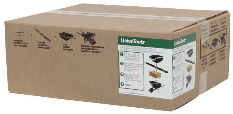 Wheelbarrow parts box includes a wheel assembly, undercarriage components and a hardware bag. For (Sku 587.2981) 5 cu-ft wheelbarrow. Tray not included.