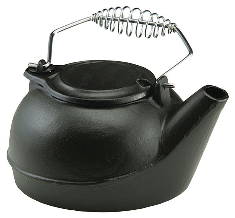 US Stove TK-02 Tea Kettle, 3 qt, Spring-Loaded Handle, Iron, Black