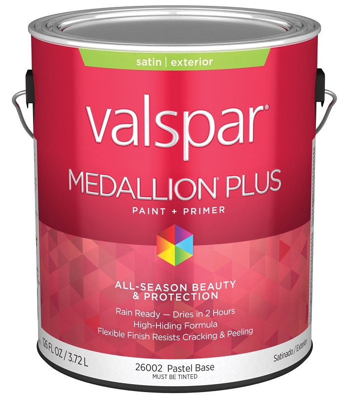 Valspar Medallion Plus 2600 028.0026002.007 Latex Paint, Acrylic Base, Satin Sheen, Pastel Base, 1 gal, Plastic Can