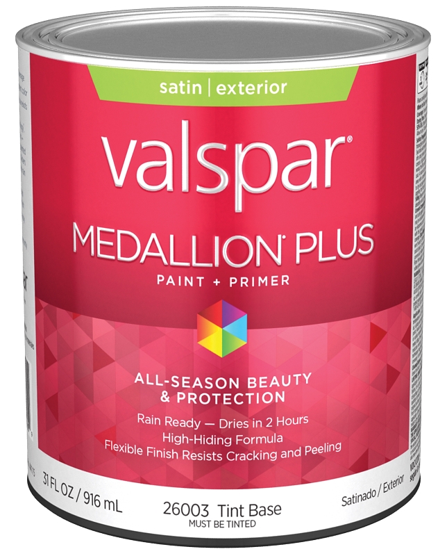 Valspar Medallion Plus 2600 028.0026003.005 Latex Paint, Acrylic Base, Satin Sheen, Tint Base, 1 qt, Plastic Can