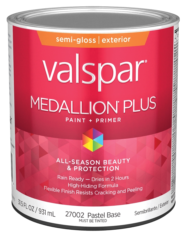Valspar Medallion Plus 2600 028.0027002.005 Latex Paint, Acrylic Base, Semi-Gloss Sheen, Pastel Base, 1 qt