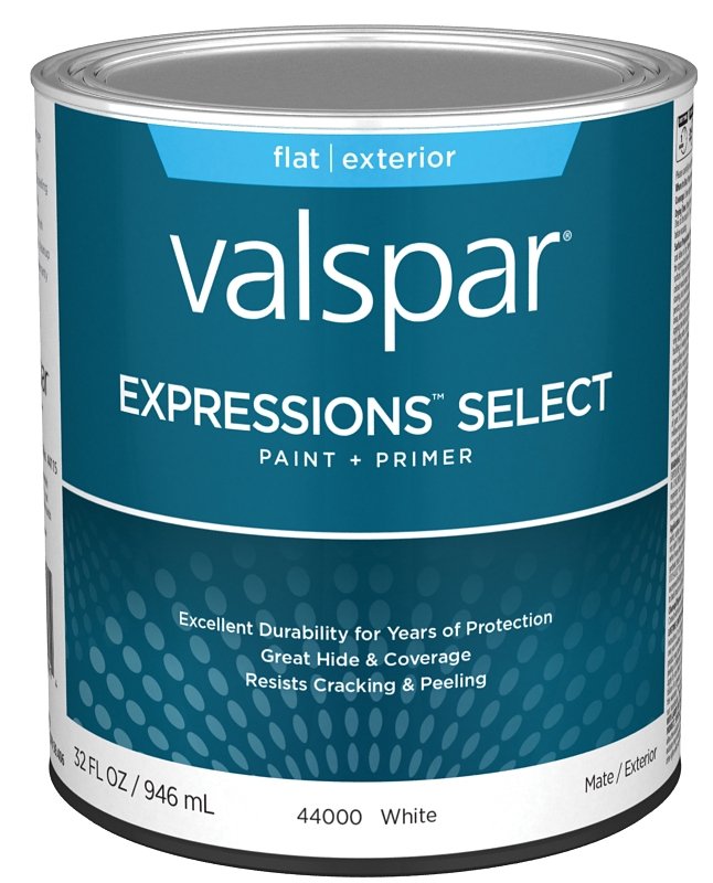 Valspar Expressions Select 4400 028.0044000.005 Latex Paint, Acrylic Base, Flat Sheen, White Base, 1 qt