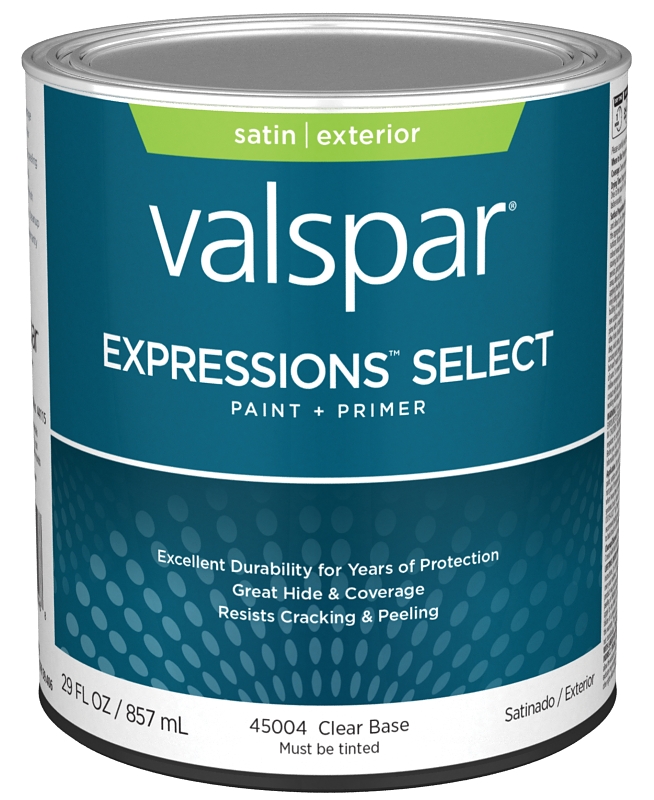 Valspar Expressions Select 4500 028.0045004.005 Latex Paint, Acrylic Base, Satin Sheen, Clear Base, 1 qt