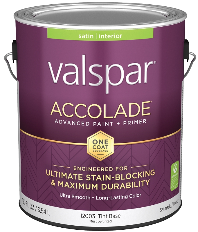 Valspar Accolade 1200 028.0012003.007 Latex Paint, Acrylic Base, Satin, Tint Base, 1 gal, Plastic Can