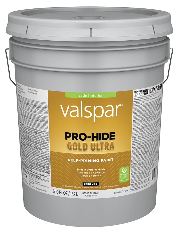 Valspar Pro-Hide Gold Ultra 6300 028.0063003.008 Latex Paint, Acrylic Base, Satin, Tint White, 5 gal