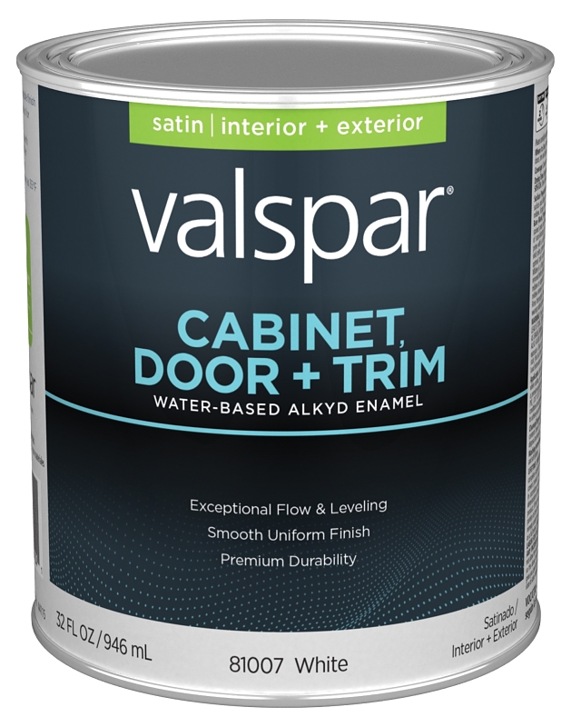 Valspar 8100 028.0081007.007 Cabinet, Door and Trim Paint Enamel, Water Base, Satin Sheen, White Base, 1 gal