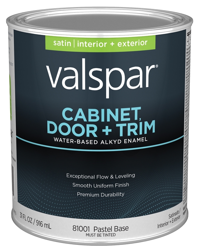 Valspar 8100 028.0081001.005 Cabinet, Door and Trim Paint Enamel, Water Base, Satin Sheen, Pastel Base, 1 qt