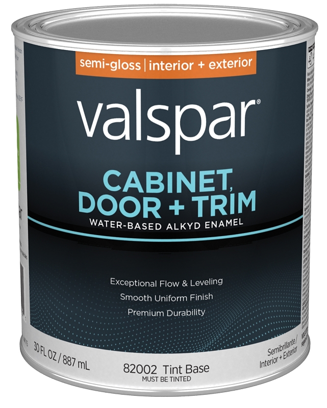 Valspar 8200 028.0082002.005 Cabinet, Door and Trim Paint Enamel, Water Base, Semi-Gloss Sheen, Tint Base, 1 qt