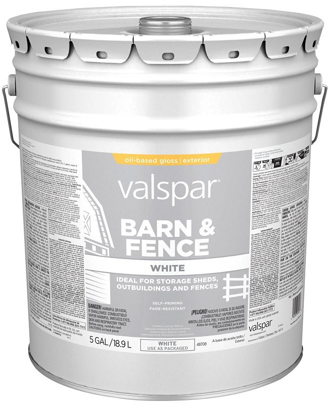Valspar 018.3145-75.008 Barn and Fence Paint, White, 5 gal Pail