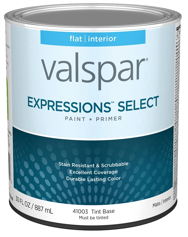 Valspar Expressions Select 4100 028.0041003.005 Latex Paint, Acrylic Base, Flat, Tint Base, 1 qt, Plastic Can
