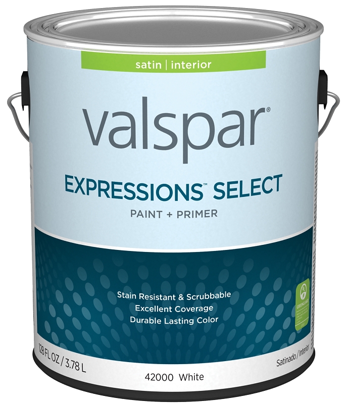 Valspar Expressions Select 4200 028.0042000.007 Latex Paint, Acrylic Base, Satin Sheen, White Base, 1 gal