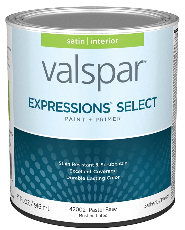 Valspar Expressions Select 4200 028.0042002.005 Latex Paint, Acrylic Base, Satin Sheen, Pastel Base, 1 qt