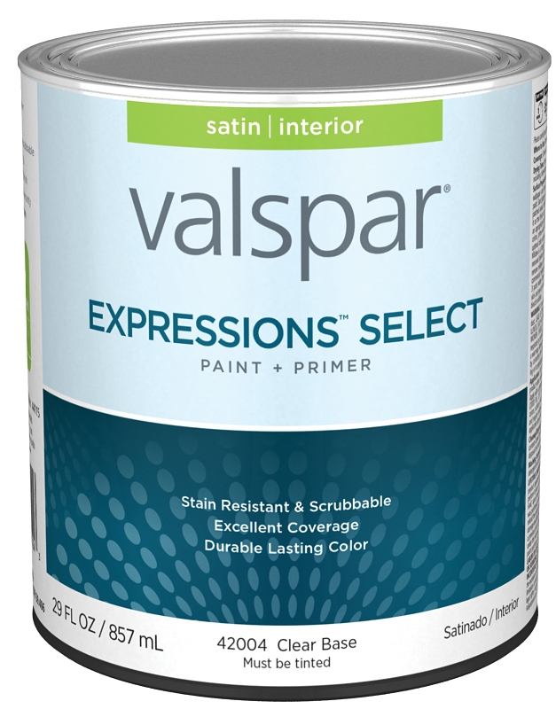 Valspar Expressions Select 4200 028.0042004.005 Latex Paint, Acrylic Base, Satin Sheen, Clear Base, 1 qt