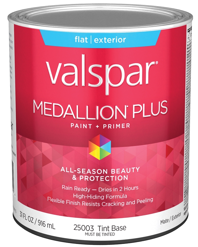 Valspar Medallion Plus 2500 028.0025003.005 Latex Paint, Acrylic Base, Flat Sheen, Tint Base, 1 qt, Plastic Can