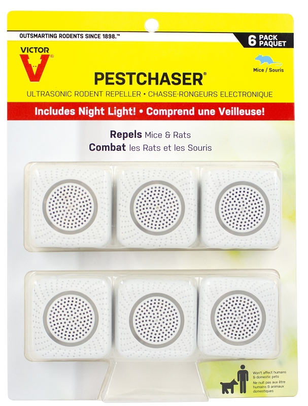 The Victor® PestChaser® rodent repellent effectively drives away rodents by emitting a highly irritating noise that can only be heard by rodents. This ultrasonic repellent is non-toxic and poison-free making it a humane option for your rodent control needs. The PestChaser® is easy-to-use, all you have to do is plug it in and it will start to deter most rodents. Each plug-in repellent is equipped with a nightlight feature that emits a soft illumination which also lets you know the product is working.
