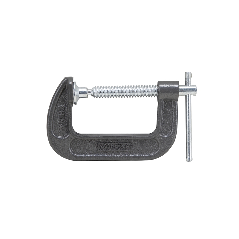 The Vulcan c-clamp throat depth is 1.75 in, body material is steel, body color gray, spindle material is steel and the spindle finish is zinc plated.