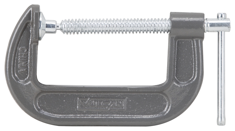The Vulcan c-clamp throat depth is 1.75 in, body material is steel, body color gray, spindle material is steel and the spindle finish is zinc plated.