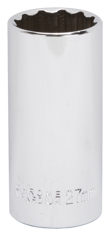 Vulcan MT6528987 Drive Socket, 27 mm Socket, 1/2 in Drive, 12-Point, Chrome Vanadium Steel, Chrome