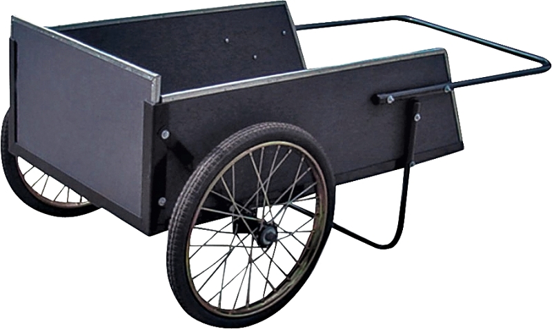 Steel frame with rust-resistant powder coat finish. Weather-resistant wood composite box. 20 in pneumatic tires for easy maneuvering on any surface. Removable front panel for easy loading and unloading. Capacity of 300 lb. Size of 7 cu-ft. Bed dimension of 42-1/2 in L x 12-3/5 in W x 24-2/5 in H.