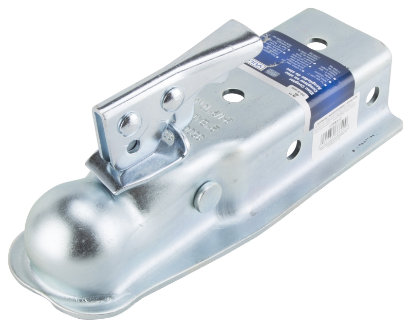 Vulcan Trailer Coupler, 3500 lb Towing, 2 in Trailer Ball, 2-1/2 in Channel Width, Lock Hole: 13.4 mm, Lever Latch, Steel, Zinc, Silver