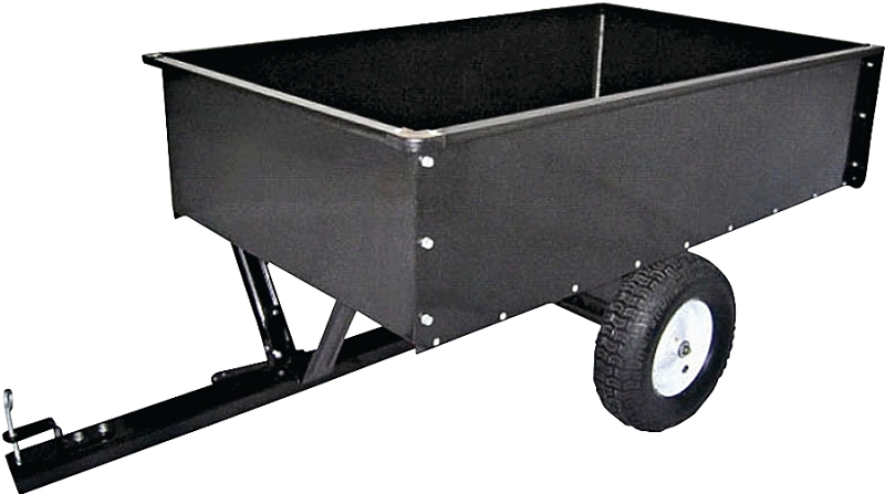 Heavy-duty steel construction with rust-resistant powder coat finish. Oversize 16 in x 535 in/650-8 pneumatic tires with offroad knobby tread. Removable tailgate and easytilt dump mechanism. Maximum capacity of 1500 lb. Dimension of 80.7 in x 37.2 in x 36.8 in. Bed size of 58 in x 34 in x 14 in.
