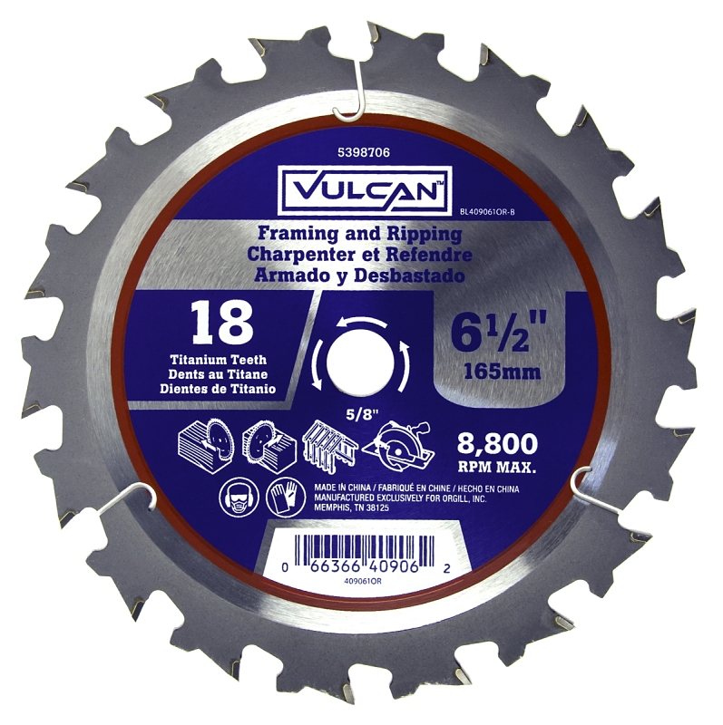 Vulcan 409061OR Circular Saw Blade, 6-1/2 in Dia, 5/8 in Arbor