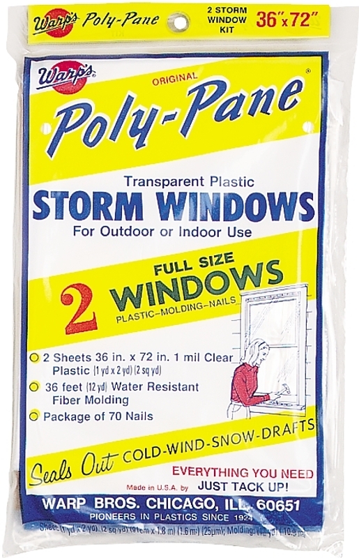 Warp’s Poly-Pane Series 2P-24 Storm Window Kit, 36 in W, 1 mil Thick, 72 in L, Clear