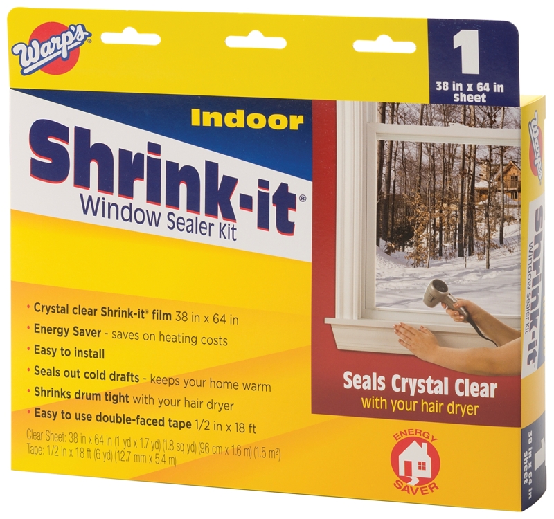 Optical clarity and fast shrinking. Insulates and seals out draft. Tough film resists tearing. Shrink-it film and double-faced tape included to cover one window.