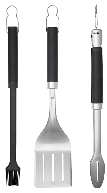 Flip burgers, turn vegetables or glaze your ribs with extra flavor. The three-sided beveled edge spatula, hands-free locking tongs and full-size silicone basting brush in the Precision three-piece grill set are your everyday grilling essentials in one kit. All tools feature a soft-touch handle for a comfortable and secure grip.