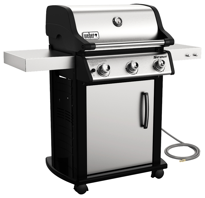 The three-burner Spirit S-315 gas grill is ideal for entertaining a crowd. Use the convenient side tables for placing serving trays, while grilling tools hang from the tool hooks. Designed with sleek stainless steel, ample cooking area and porcelain-enamel cast-iron cooking grates for the best sear.