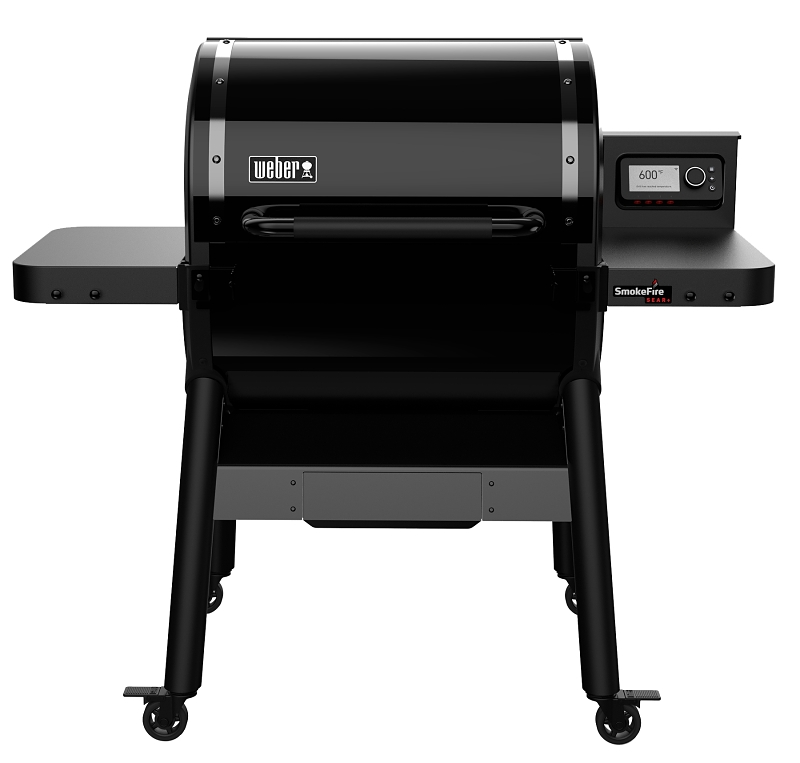 Weber Free-Standing Pellet Grill, Smoker Included: Yes, Thermometer Included: Yes, Number of Shelves: 2, Black, Dimensions: 47 in H x 43-1/2 in W x 33 in D